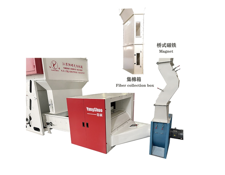 該機(jī)用于將原料以及回料混合開(kāi)松,并由風(fēng)機(jī)送至下道工序。