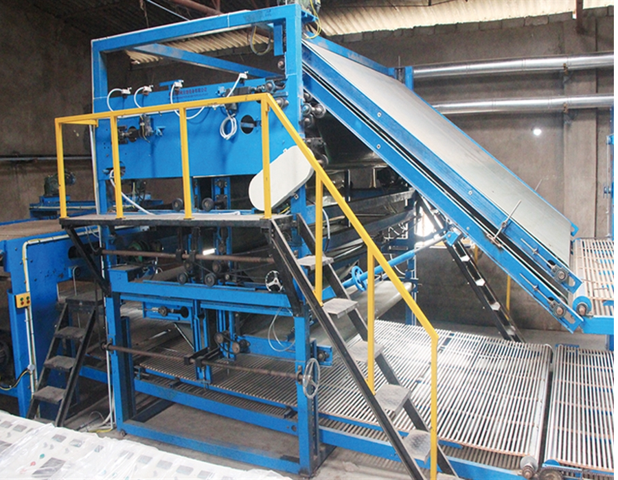 將梳理后的棉網均勻折疊成一定的寬度和厚度,加壓后輸送到下道工序。